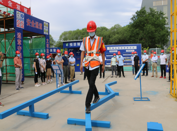 培训基地主要设置了高处坠落、边坡坍塌、触电伤害等25项安全体验项目,能够最大程度模拟真实场景下的安全生产事故,让体验者亲身感受事故发生的后果,进一步增强安全防范意识。在安全体验过程中,首先由现场讲解员详细介绍体验基地各安全培训项目和实际施工过程中容易出现的安全隐患,并组织参加人员对现场体验项目进行了实地操作演练;最后向全体人员发放了安全知识宣传资料200余份。